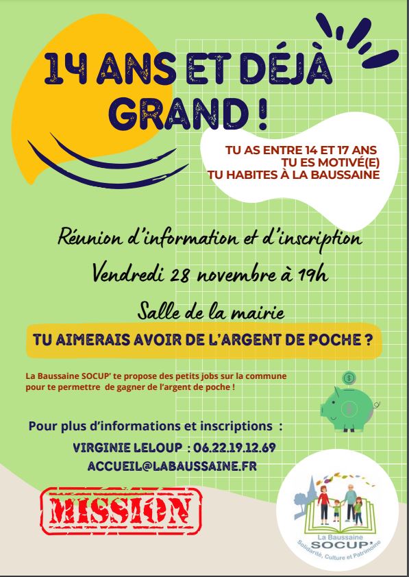 14 ans et déjà grand! Tu aimerais avoir de l’argent de poche. admin_lb5 novembre 20255 novembre 2025 Non classé ← Invitation 11 novembre 2025